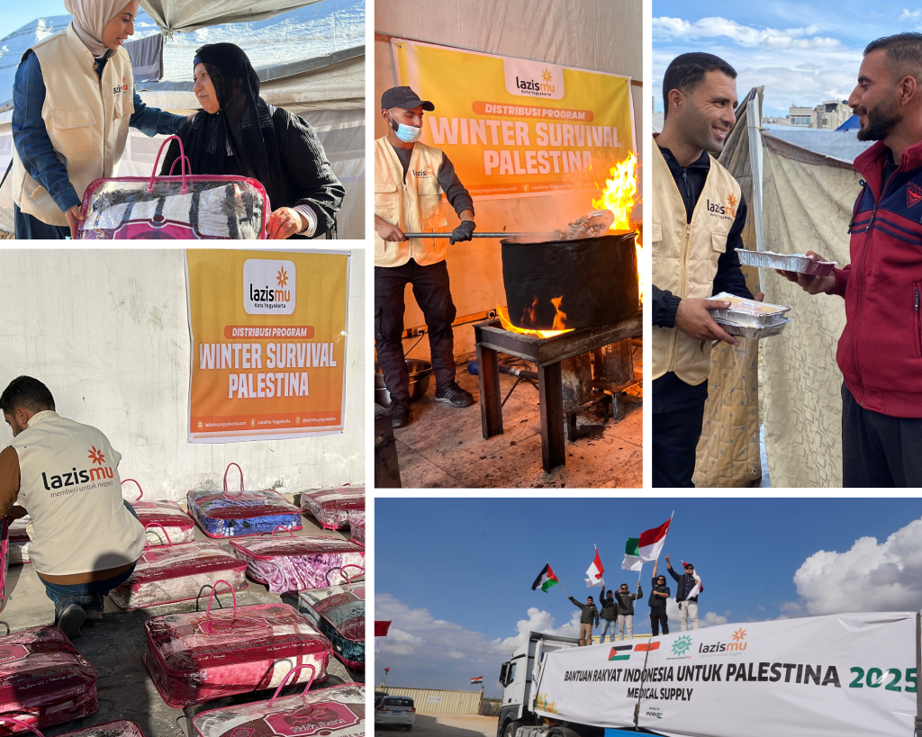 Donasi yang masuk dari masyarakat melalui Lazismu Kotagede dan Lazismu se-Kota Yogyakarta dikoordinasi oleh Lazismu Kota Yogyakarta. Selain disalurkan melalui Lazismu Pusat, juga bekerjasama dengan relawan setempat untuk memberikan bantuan langsung. Pada 20-21 Desember 2025, Lazismu Kota Yogyakarta membagikan 400 makanan hangat kepada warga Gaza City. Dan tanggal 22 Desember 2025 membagikan selimut untuk warga, yang hingga saat bantuan diberikan, masih tinggal di tenda pengungsian. Penerima bantuan sangat berterimakasih kepada rakyat Indonesia dan mendo’akan agar kelak Allah membalas kita dengan surga.